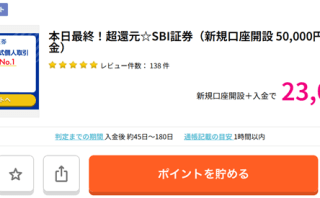 キャンペーン 【本日最終!!】SBI証券 口座開設で23,000円分ポイントもらえる!