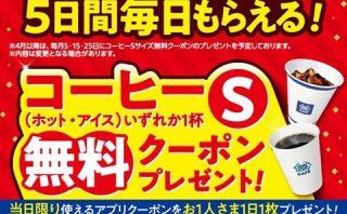 キャンペーン 【ミニストップアプリ】5日間毎日コーヒーSサイズ無料クーポンプレゼント!キャンペーン