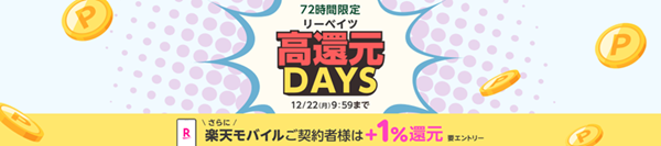 【PR】72時間限定!リーベイツ 高還元DAYS!開催中です!!