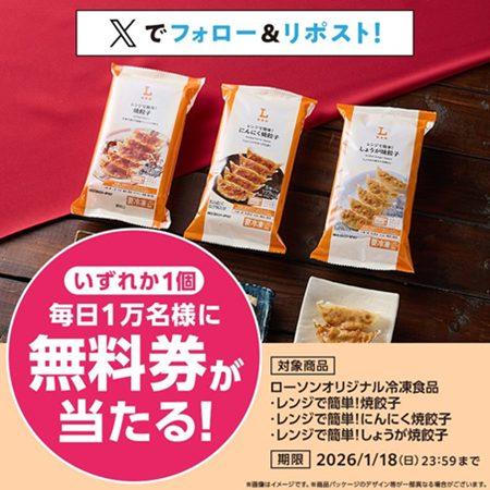 1月14日(水)スタート♪毎日1万名に抽選で「ローソンオリジナル冷凍食品 レンジで簡単!焼餃子」無料券をプレゼント!