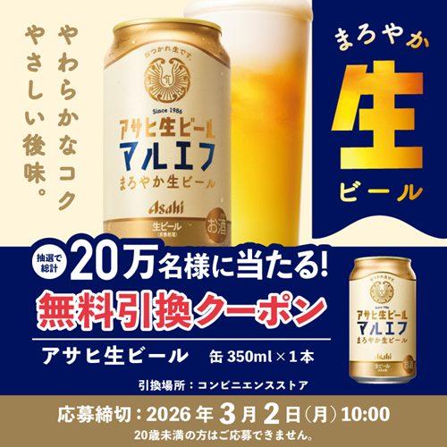コンビニで『アサヒ生ビール』と無料引換えできるクーポンを200,000名様にプレゼントします!