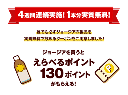 ※ご応募はおひとり様週1回まで、キャンペーン期間中おひとり様4回までとなります。えらべるポイントクーポンの使い方 ジョージアを買って レシートを登録すると もらえる!