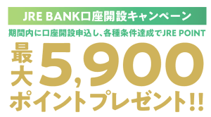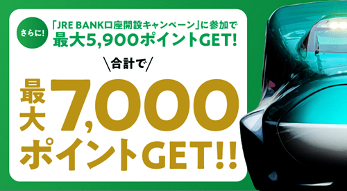 JRE BANK口座開設キャンペーン特典最大5,900ポイント、JRE BANKの紹介コード入力で1,100ポイント、合計で最大7,000ポイントGETできます!