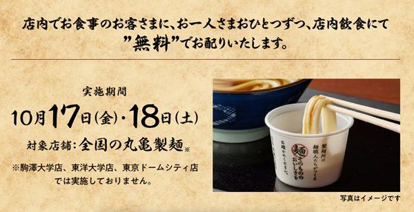 丸亀製麵 ひと口醤油うどん 2日間限定無料配布キャンペーン