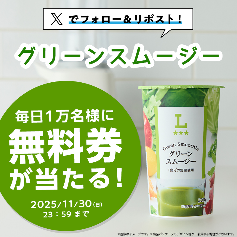 11月26日(水)スタート♪毎日1万名様に抽選で「グリーンスムージー」無料券をプレゼント!|ローソン公式サイト