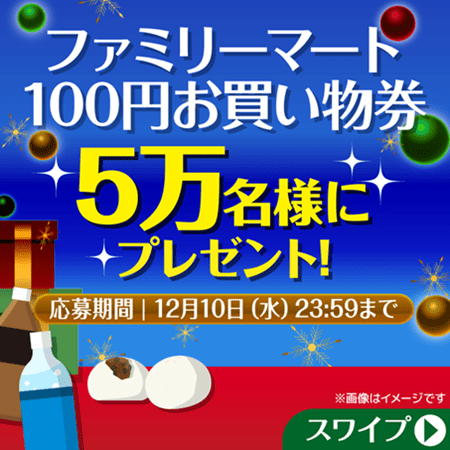 ファミリーマート100円お買い物券が抽選で5万名に当たる!