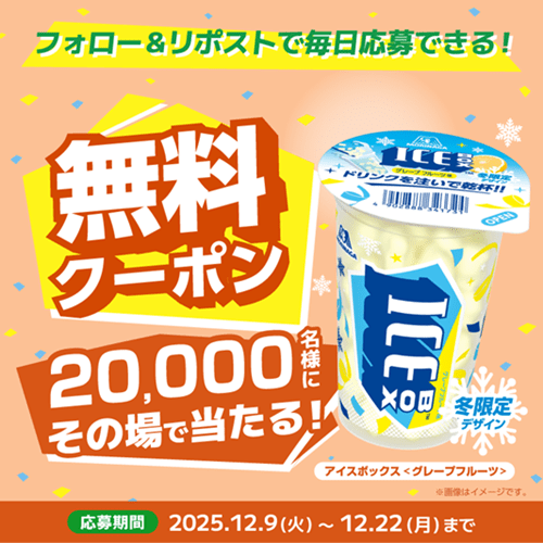 キャンペーン応募期間中にXで応募いただいた人の中から抽選で合計2万名に「アイスボックスグレープフルーツ」の無料引換クーポンをプレゼント!