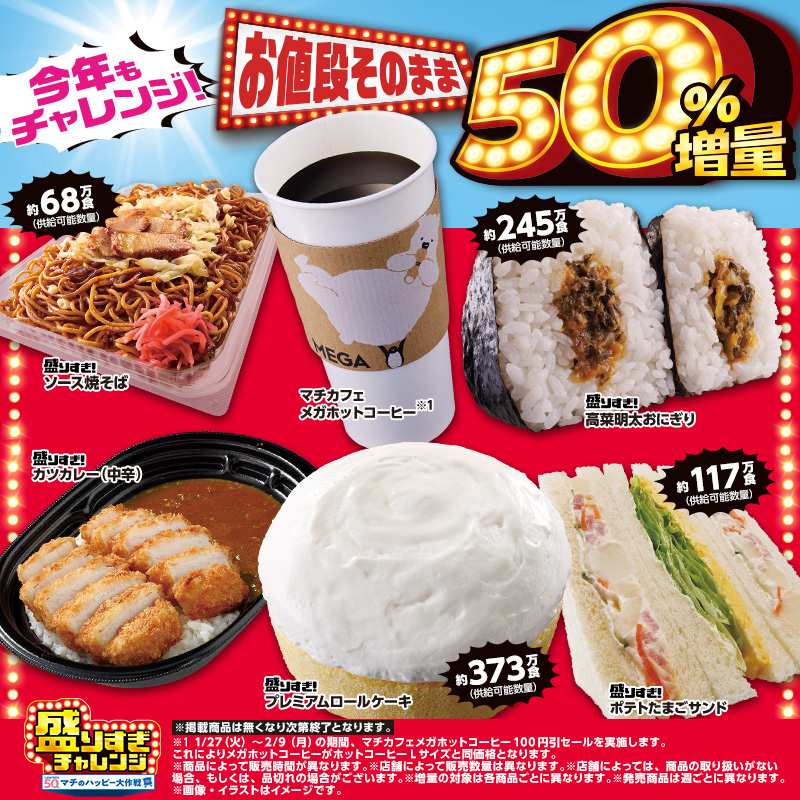 \今年もチャレンジ!/盛りすぎチャレンジ 1月27日(火)から4週連続開催!|ローソン公式サイト