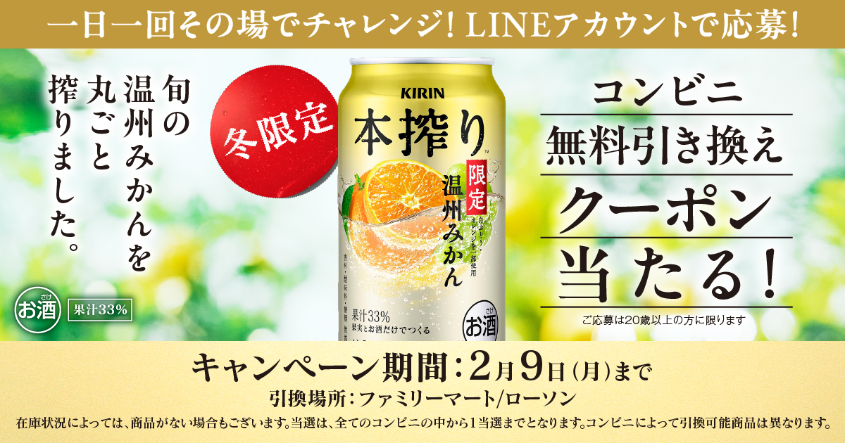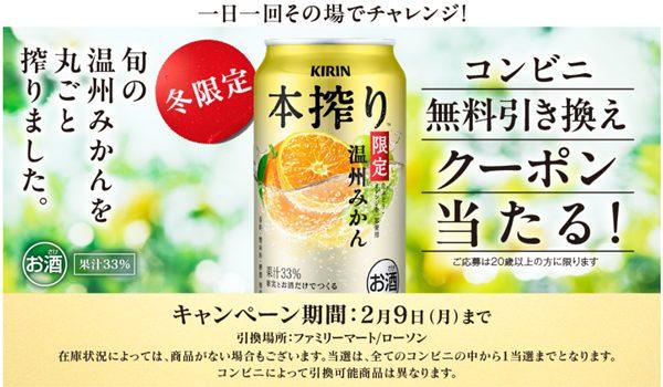 26年2月 本搾り™チューハイ コンビニ無料引き換えクーポンが当たる!キャンペーン