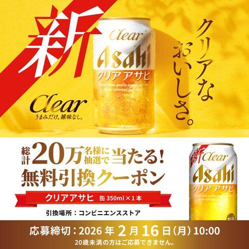 コンビニで『クリア アサヒ』と無料引換えできるクーポンを200,000名にプレゼントします!