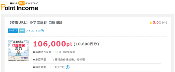 ポイントインカム経由のみずほ銀行 新規口座開設で超高額ポイントGETのチャンスです!