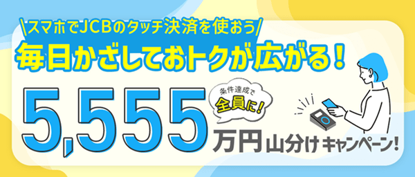 毎日スマホでJCBのタッチ決済!5,555万円山分けキャンペーン