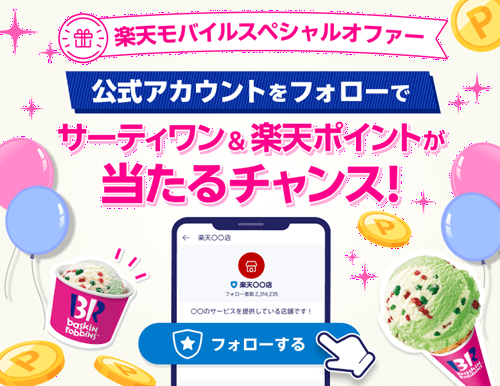 【楽天モバイルご契約者様限定】公式アカウントをフォローでサーティワン&楽天ポイントが当たるチャンス!第1弾