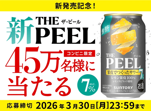 新発売キャンペーン!LINEでログインしアンケートに回答すると、45万名に【THE PEEL<レモン>ALC.7%350ml缶 1本無料引換えクーポン】がその場で当たる!