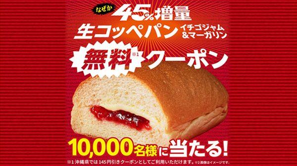 ファミリーマート 「生コッペパン(イチゴジャム&マーガリン)」無料クーポンが総計1万名に当たる!