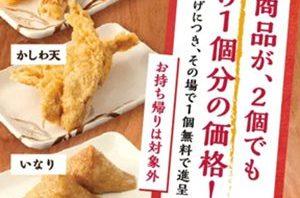 【丸亀製麵】3日間限定『ちくわ天』『かしわ天』『いなり』1個買うともう1個もらえる!キャンペーン