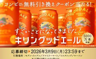 26年3月 キリングッドエール コンビニ無料引き換えクーポンが当たる!キャンペーン 応募期間:2026年3月3日(火)11:00 ~ 3月9日(月)23:59 まで コンビニ無料引き換えクーポン当たる! ■引き換え対象商品 キリングッドエー...