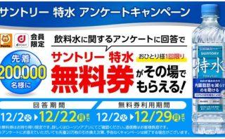 キャンペーン 【先着20万名!!】サントリー特水600ml 無料クーポンプレゼント!キャンペーン ローソンアプリ【先着200,000名!サントリー特水無料券プレゼント!】飲料水アンケートキャンペーン おひとり様1回、アンケートに答えて先着で200,000名にサントリー特水の無料券が当たります! ※キャンペーン参加にはローソンアプリ、ロー... 2025.12.02 キャンペーン